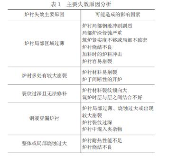 中頻爐爐襯裂紋傾向大和不耐鋼液沖刷是中頻爐失效的主要原因,選擇比較容易燒結、裂紋和崩裂傾向 小、耐鋼液沖刷等特點(diǎn)的中頻爐爐襯材料,采用適當的爐襯修筑和維護工藝,能使中頻爐爐齡從 45 爐次提高到 70 爐 次以上。