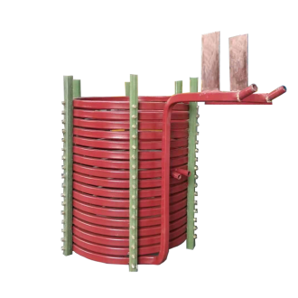 中頻爐感應線(xiàn)圈是由螺旋狀矩形紫銅管、固定膠木柱、銅螺釘、連接排以及冷卻水路組成。這其中通過(guò)變頻電流產(chǎn)生磁場(chǎng)為螺旋狀矩形紫銅管。因此,中頻爐感應線(xiàn)圈的功能就是使得中頻電流通過(guò)中頻爐螺旋形感應線(xiàn)圈產(chǎn)生磁場(chǎng),中頻爐感應線(xiàn)圈內部磁場(chǎng)大小和分布范圍由感應線(xiàn)圈設計所決定的,也就是說(shuō)與中頻爐感應線(xiàn)圈的矩形銅管尺寸、匝數、感應線(xiàn)圈直徑有很大關(guān)系。